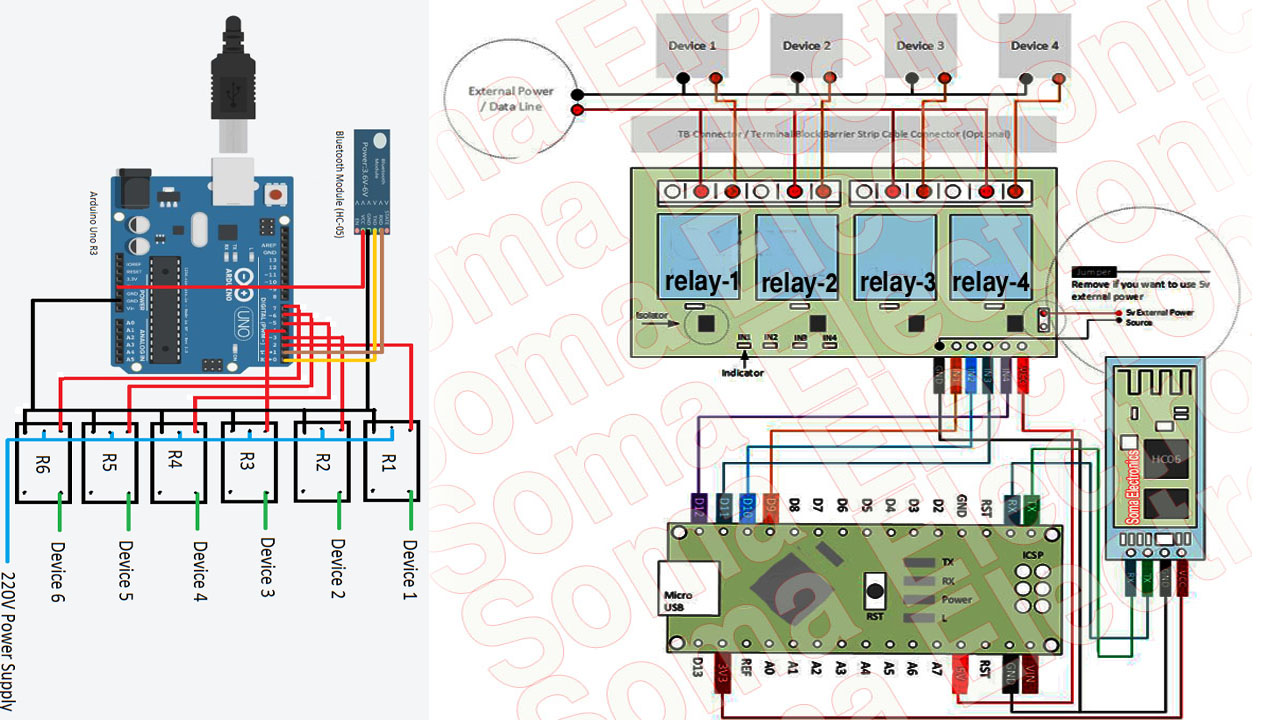 Aurduino Code Copy This : int R1 = 9; int R2 = 10; int R3 = 11; int R4 = 12; char data = 0; void setup() { Serial.begin(9600); pinMode(R1, OUTPUT); pinMode(R2, OUTPUT); pinMode(R3, OUTPUT); pinMode(R4, OUTPUT); } void loop() { if (Serial.available()) { data = Serial.read(); Serial.print(data); } if(data == ‘0’){ digitalWrite(R1, 0); } if(data == ‘1’){ digitalWrite(R1, 1); } if(data == ‘2’){ digitalWrite(R2, 0); } if(data == ‘3’){ digitalWrite(R2, 1); } if(data == ‘4’){ digitalWrite(R3, 0); } if(data == ‘5’){ digitalWrite(R3, 1); } if(data == ‘6’){ digitalWrite(R4, 0); } if(data == ‘7’){ digitalWrite(R4, 1); } }
